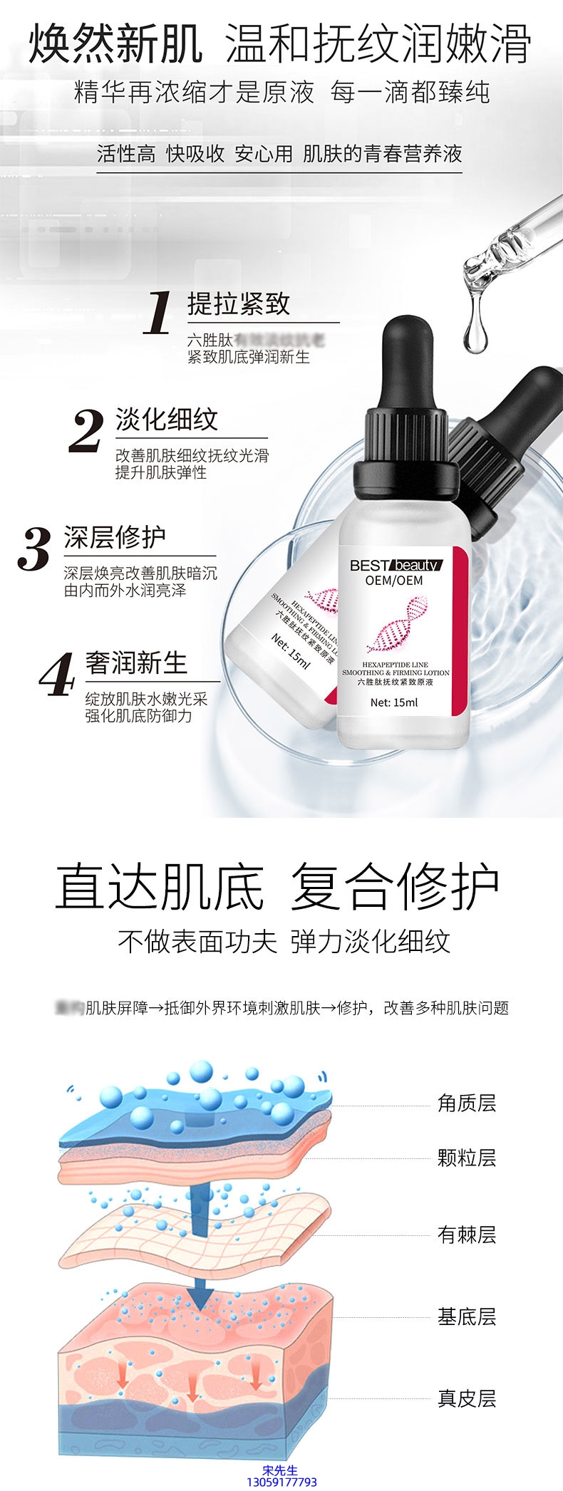 六胜肽抚纹紧致原液OEM ODM代加工